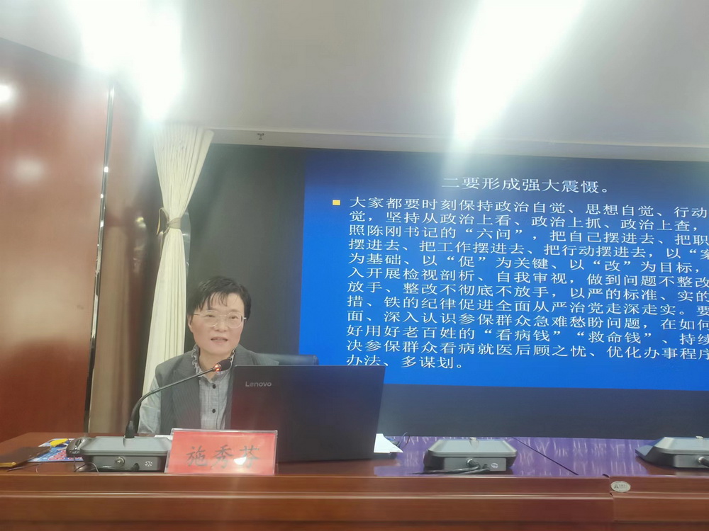 施秀芬立足医保工作职能,以“持之以恒以严的基调正风肃纪 以铁的纪律打造干净担当的铁军”为题,紧紧围绕全国医保系统违纪违法和我省6名领导干部严重违反中央八项规定精神等典型案例,生动讲解党风廉政建设和反腐败工作面临的形势和任务,并从提升廉洁意识、践行廉洁行动、严格正风肃纪三个方面,教育引导医保系统党员干部要敬畏法纪,依规依纪依法履职,正确行使权力,树牢全心全意为人民服务的意识。