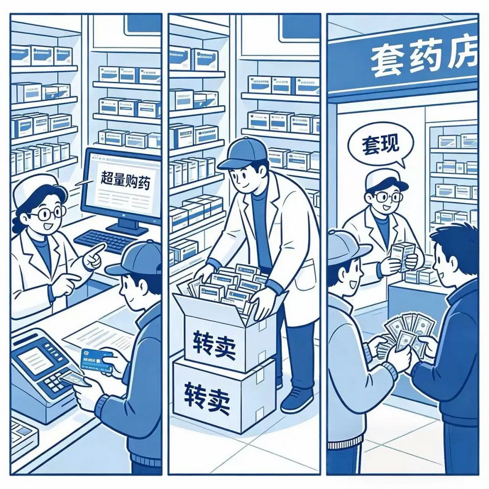 3.超合理数量购药并转卖,获取现金、实物等非法利益;